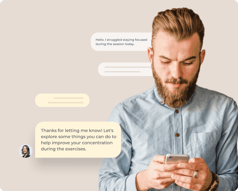 Your dedicated mental health specialist is available to chat daily and tailor your routines. No need to wait for an appointment.